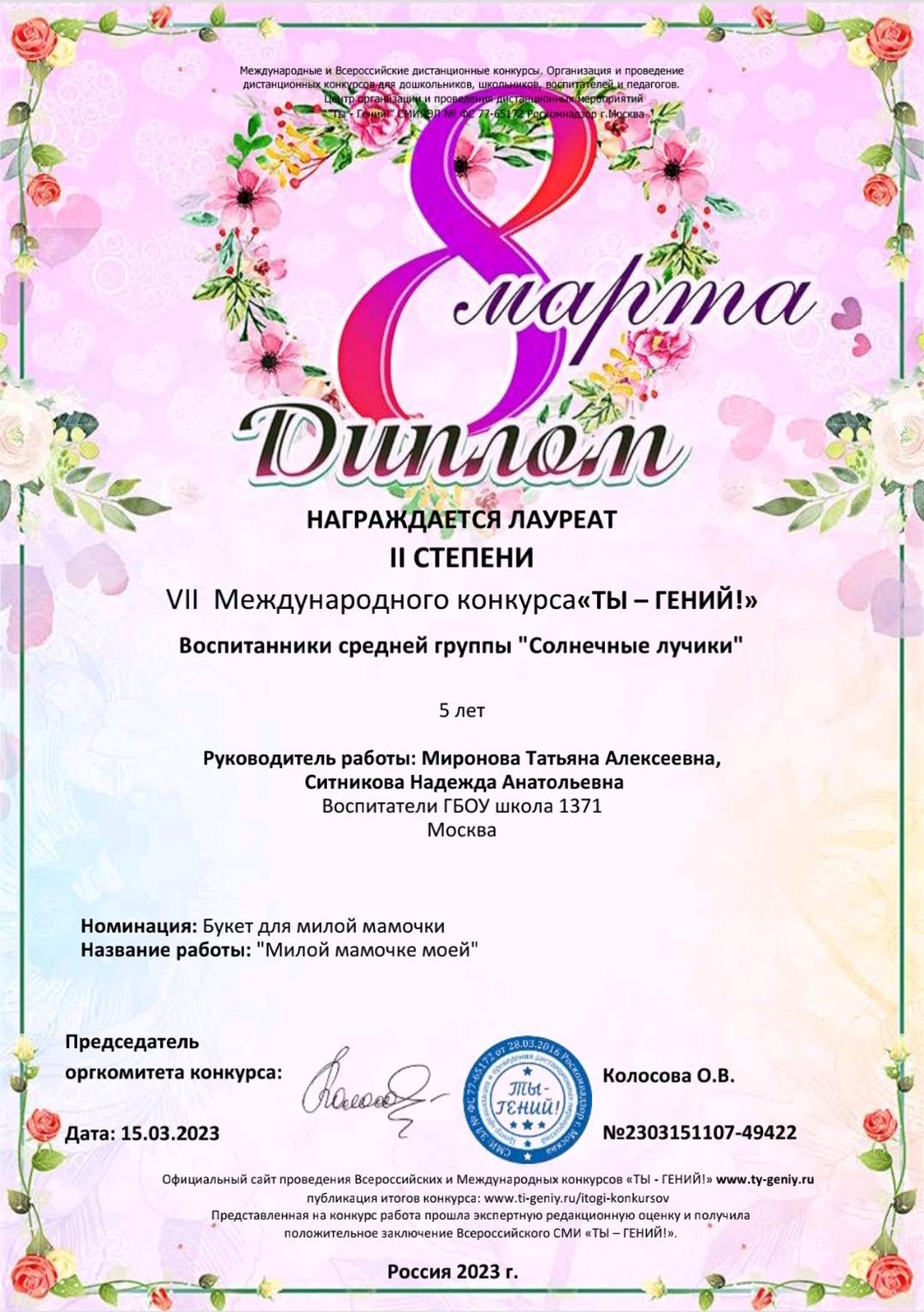 Группа № 62 "СОЛНЕЧНЫЕ ЛУЧИКИ"