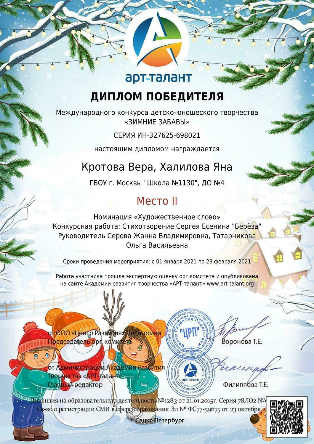 ГБОУ "Школа № 1371 "Крылатское" г. Москва