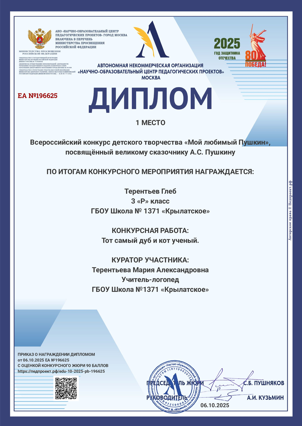ГБОУ "Школа № 1371 "Крылатское" г. Москва